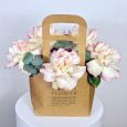 Пионы, розы и эустомы в коробке