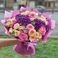 Букет из 15 розовых пионов в крафте