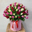 Корзина нежно-розовых роз и эустом