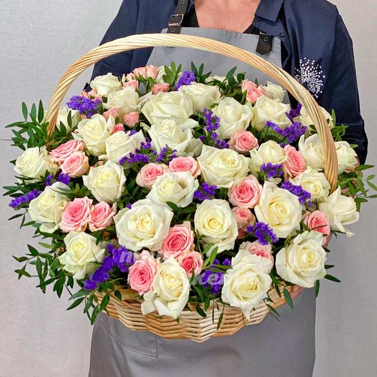 Корзина с розами и статицей