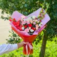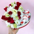 Набор из мягкой игрушки, конфет и 21 тюльпана